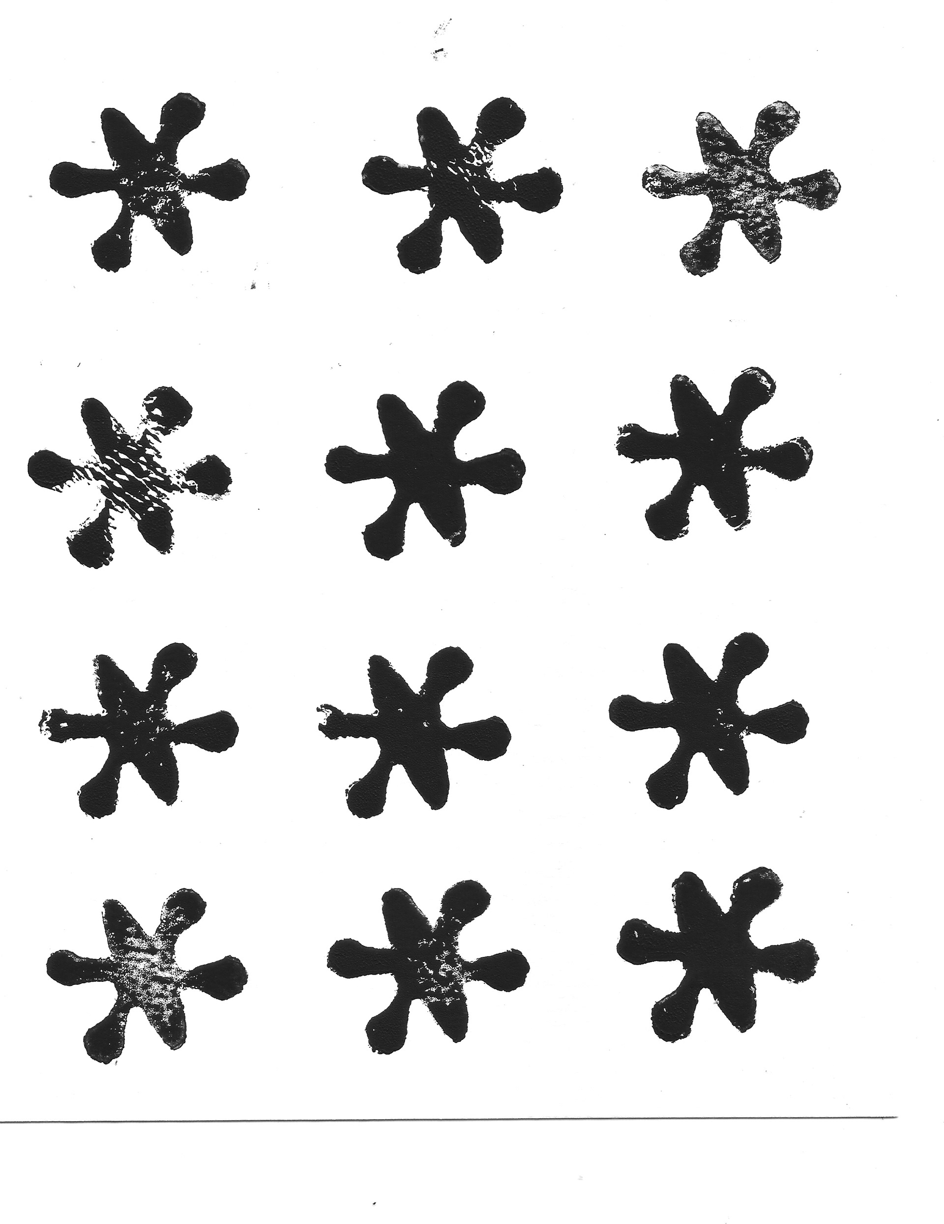 The logo began with four linocut stamps that I carved, stamped, and scanned, and refined in Adobe Illustrator.